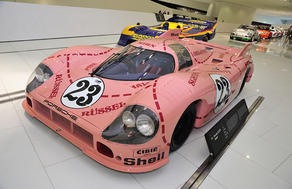 其實如果就展出的車輛數與種類來看,平均約80輛的規模雖不大,且大部分的比例是賽車及’70年之後的車款,但其實只要曾愛過這個品牌,隨便一部都能夠讓人駐足許久,其中讓我停留最久的就是911 Turbo(1976年)及911 Carrera RS 2.7,這兩部車的影像有很長一段時陪我渡過青春歲月,17~18歲的記憶頓時浮現眼前。每一部車都有許多故事,在這當中讓我最感興趣的就是有著粉紅豬暱稱的917/20 Coupe (1971年),粉紅色塗裝加上套用肉品部位圖的概念,即便這部車在當年並未創造輝煌戰果,但依然成為知名度極高的代表作。