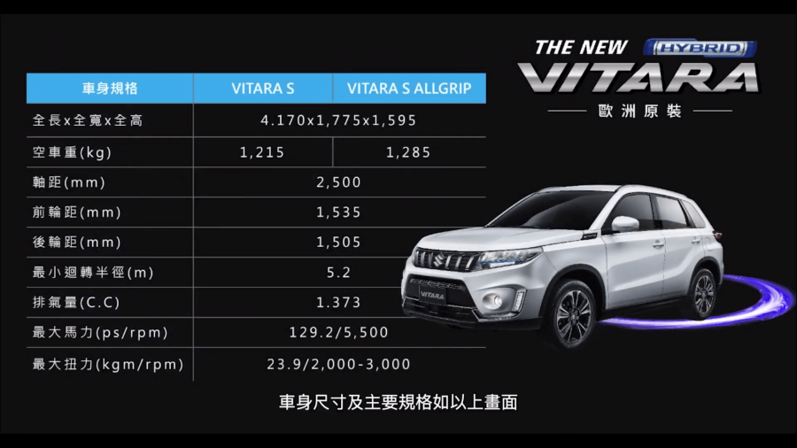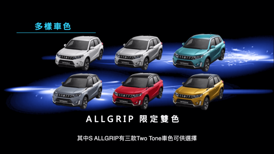 PS.雙色車身加價1萬元,2021年12月凡領牌VITARA車款贈送「不鏽鋼門檻飾板」及「運動版擾流尾翼」兩項勁化套件之促銷方案,VITARA全車系皆適用,期間為自即日起至2021年12月30日止,且須於2021年12月30日前完成領牌程序者有效。
