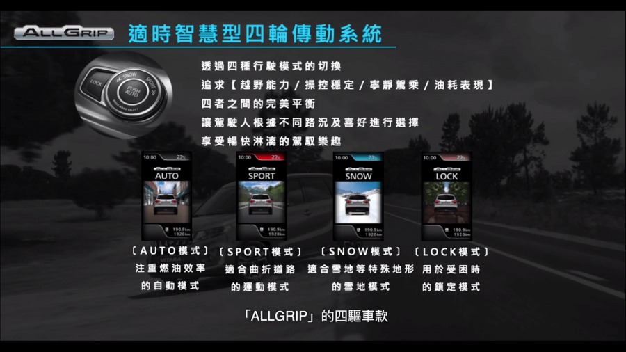 AllGrip適時智慧型四輪傳動系統向來是Vitara受歡迎的一大特色,同級距中少有的四驅設定結合靈巧車身,對喜愛戶外活動或有越野需求的民眾幾乎難以抗拒Vitara的魅力。這套系統提供四種行駛模式的切換,能根據不同路況及喜好來做選擇,各種路況都能提供優異的穿越能力及駕馭樂趣,且可切換的驅動設定也實現了寧靜感並兼顧油耗表現。