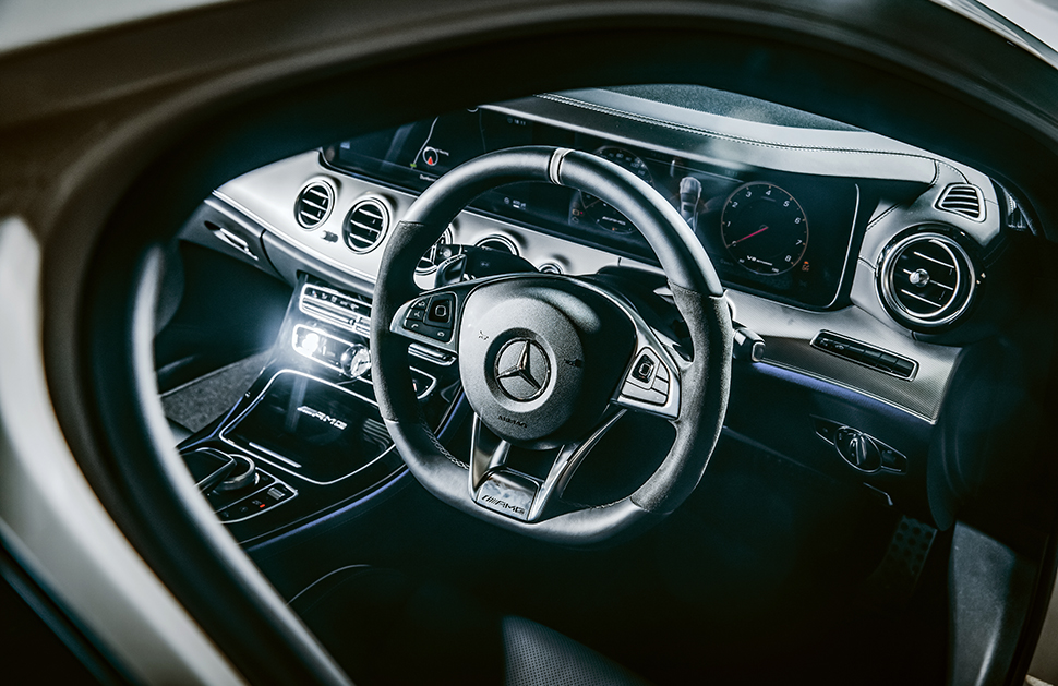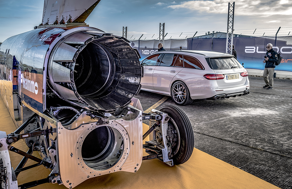 十多名參與設計和開發這件1,600km/h機器的工程師紛紛走過來端詳E63S。他們打開引擎蓋,對4.0公升V8把兩個渦輪增壓器藏在汽缸夾槽內的緊湊佈局讚口不絕,繼而發動引擎疾點油門,機庫旋即響似風穴,天地彷彿為之停頓,直到迴聲消逝才有人打破寧靜慢慢吐出這番評言:「好啊,這個應該很管用。」有白色護法加入的四人救急班顯然盡力避免躊躇滿志的心情溢於言表,最少起跑班在旁時切忌沾沾自喜,因為後者仍須與富豪搭檔。