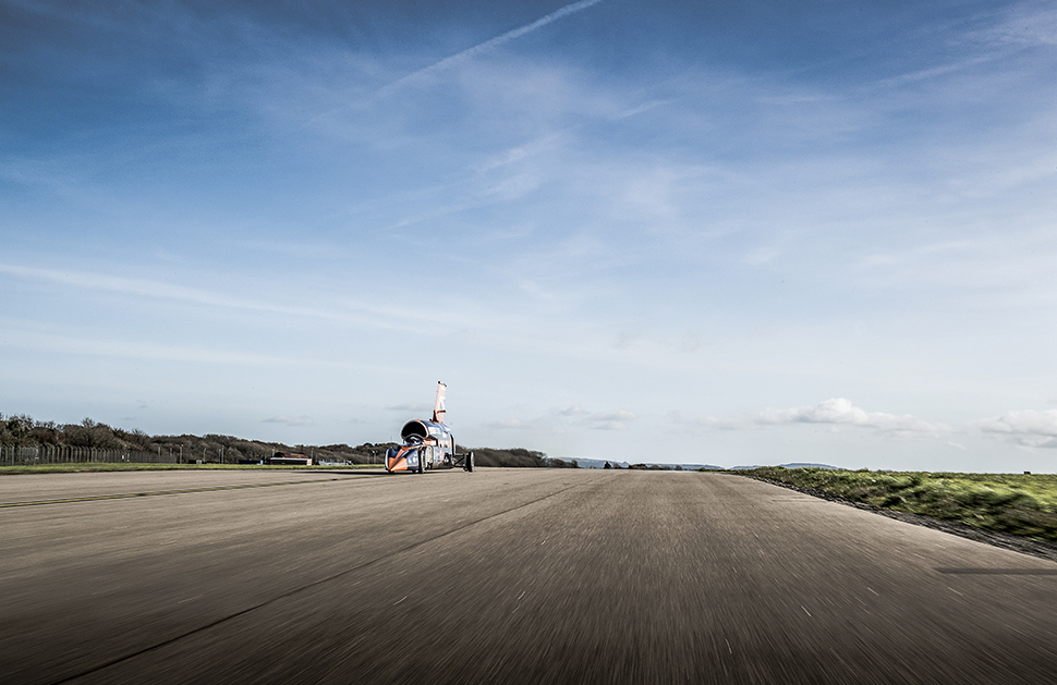 各位大概聽過Bloodhound SSC正在進行首輪測試的消息,甚或看過試車過程。你也許以為測試內容不外乎開上跑道一口氣跑到尾然後掉頭再來一遍那麼簡單,但挑戰陸速紀錄的快車可用不著超市手推車的靈活轉向本領,機場卻往往執於安全。所以Bloodhound往返跑道時必須有其它車輛陪跑。回程相對寫意,不過以96km/h輕輕鬆鬆待在巨大噴射快車的尾流中,感覺著實有點荒誕。至於去程,Bloodhound就有點像……總之就像颱風戰鬥機引擎驅動的東西吧。全速推進的話,它只消7.6秒便從靜止狀態直搗200mph大關(320km/h)。