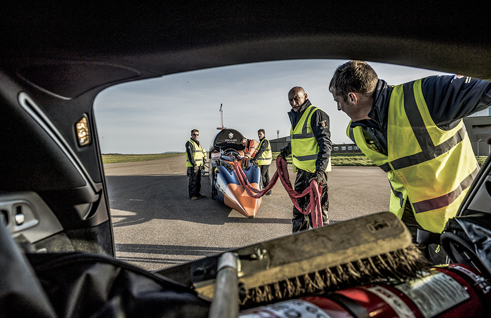 你絕對不想讓Bloodhound久候,因為燃料開支、測試時間、機件壓力等等問題會隨著一分一秒的等待而加重。再者一旦發生機件故障或車手Andy Green衝過頭之類的最壞情況,他們也有必要盡速調動救急隊。縱使用不著從草叢中拉Andy出來,他們仍然需要在每次試跑後用目視方式從頭到尾檢查Bloodhound,確保它沒有受損,或者出現車身鑲板鬆脫之類的問題。
