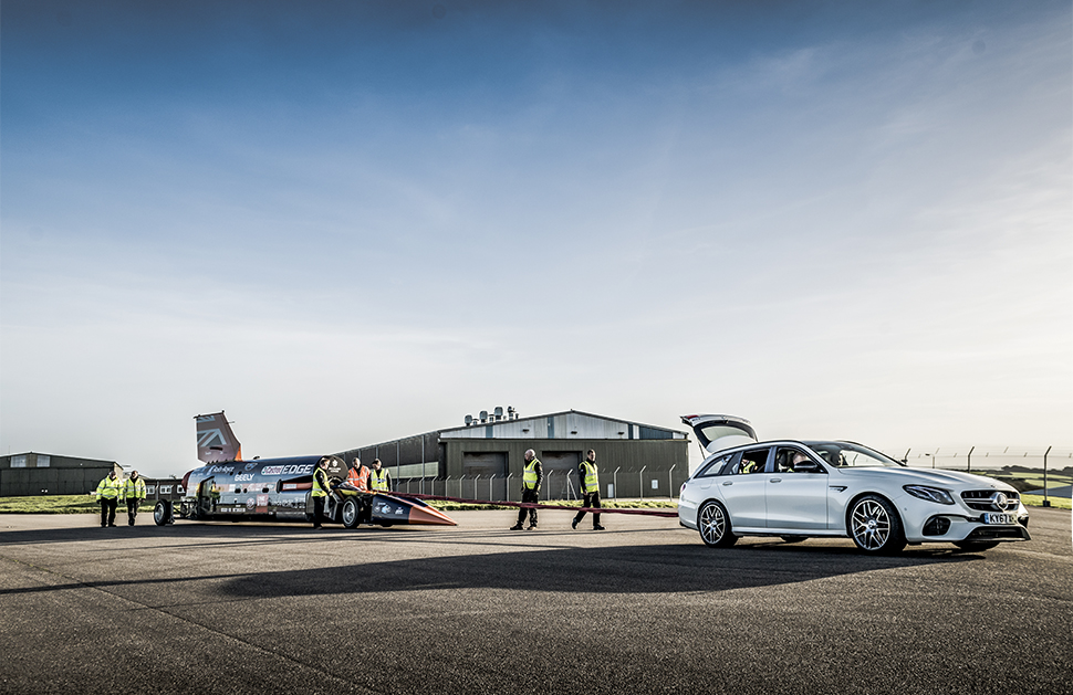 E63S如是者使得Bloodhound的測試過程變得更快更輕鬆。作為獎勵,大伙兒在這天工作結束時決定給予E63S一個光榮任務,負責把我們的陸速紀錄挑戰者拖返飛機庫。憑著四驅功能和健碩傳動,堪稱世上最快的旅行車就這樣拖著可望成為天下第一快的汽車返回巢穴,為TG年度最佳旅行車大獎畫上圓滿句號。