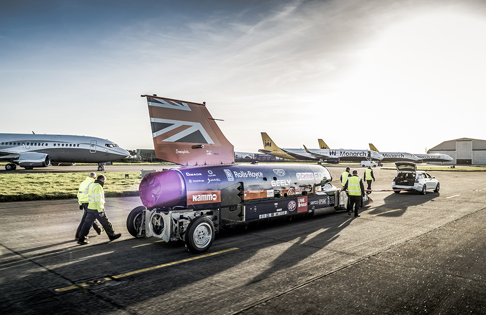 「我們一直覺得有點好生難辦。」Bloodhound主力工程師暨機械設計人Mark Elvin說:「迄今為止,我們一直用兩部富豪SUV陪跑,但頂多只能把它們開到97mph(156km/h),意味著它們抵達跑道末端的時間比Bloodhound落後30秒或以上。」