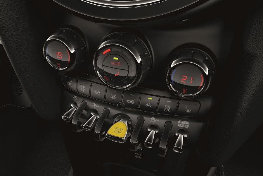 在原有的GREEN模式、SPORT模式或是在兩者之間取得平衡的MID模式之外,MINI Electric還新增GREEN+模式,降低不必要的電力消耗,提升電池續航力。駕駛亦可選擇一般的。此外,位於車輛啟動撥桿左側的動能回充調整撥桿,可根據駕駛需求調整動能回充效能,靈活控制回充制動效果與電能效率,幫助駕駛適應純電操控。