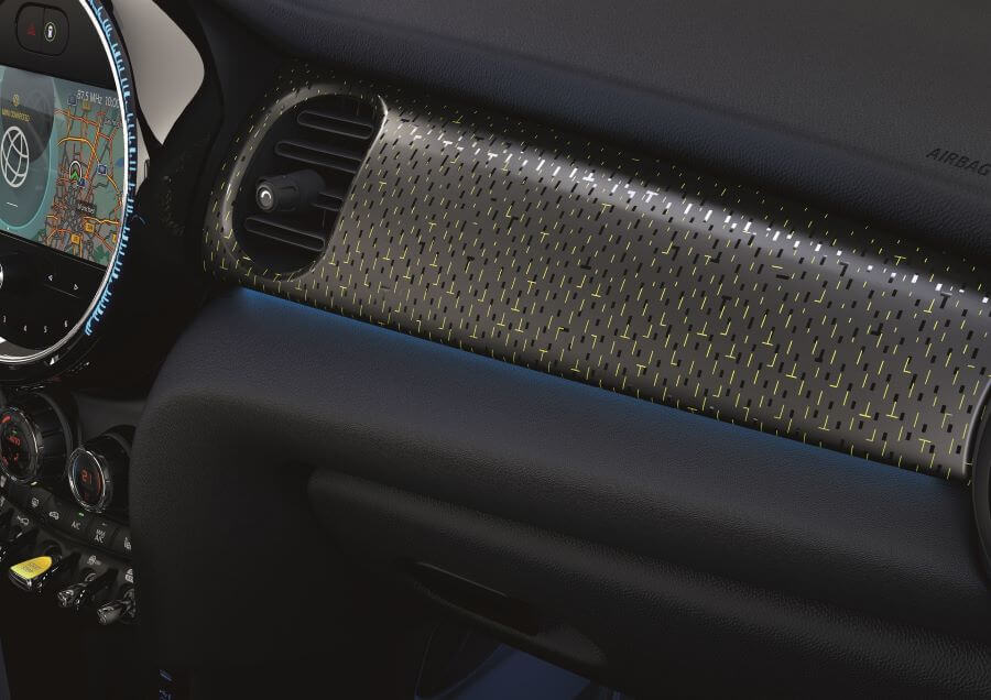 在視覺呈現上,電動車專屬代表色Energetic Yellow點綴於車頭水箱護罩、車側方向燈飾板與車尾車型銘牌的S徽飾上,進入座艙,同樣可以看到MINI Cooper SE Electric內裝飾板亦有Energetic Yellow點綴;專屬排檔桿、整合式數位儀錶,甚至是致敬經典戰鬥機駕駛艙撥桿設計的車輛啟動撥桿也都有黃色,凸顯不同於傳統然油動力車型的氛圍。