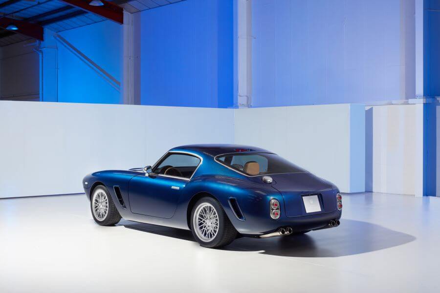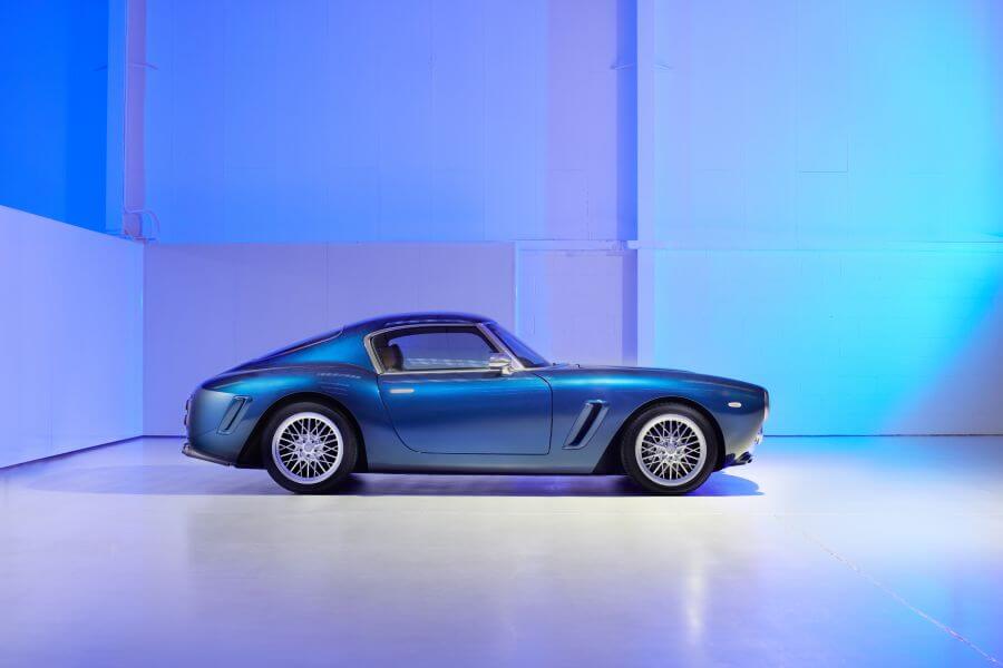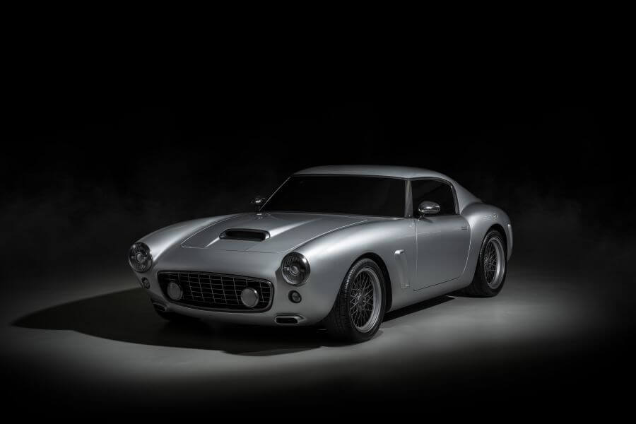 這是RML Shortwheelbase,是這家車輛科技公司最新的仿古作品,整體造型取材自目前市面上身價極為非凡的250 GT,並採用了550 Maranello作為打造基礎,保留V12引擎、鋼製底盤以及六速手排變速箱,車身全數重新以碳纖維材料打造,並且採用了相當大的一體式車身設計,按照廠方所述,A柱後車身採用相當大面積的一體式架構,但就這部分的重量就比550M原車少上30公斤,僅有40公斤。