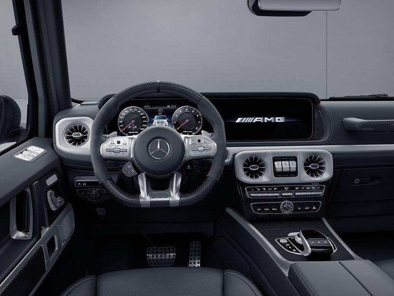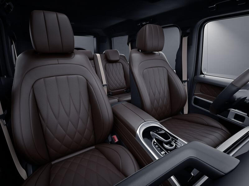 為地表越野之王 Mercedes-AMG G 63 打造的 Hero 系列,有著不容錯認的紐柏林消光綠車漆,搭配 AMG 夜色套件、消光黑後保桿與車頂,輪圈換上 22 吋 AMG 交叉輪輻式鍛造黑色輕合金式樣,內裝更有 Exclusive Line 內裝套件、AMG 高性能方向盤、以綠色縫線點綴之Nappa真皮,最後再以 AMG 碳纖維飾板點綴,從裡到外展露硬派風格。G-Class 限量三款 Hero 系列以絕無僅有之姿,大展地表之王的壯闊霸氣!