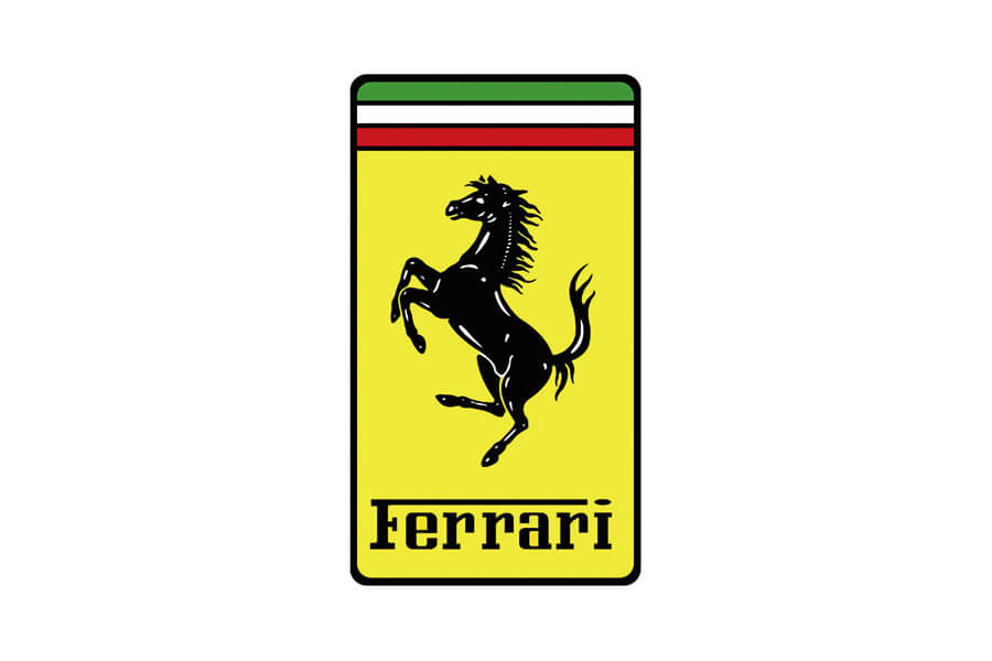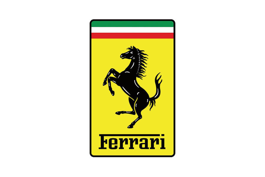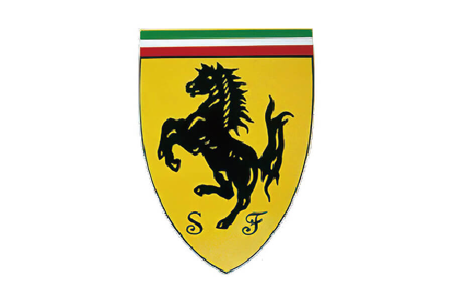 1947-2002:附有公司名稱的方形商標象徵法拉利首款街車投入市場。