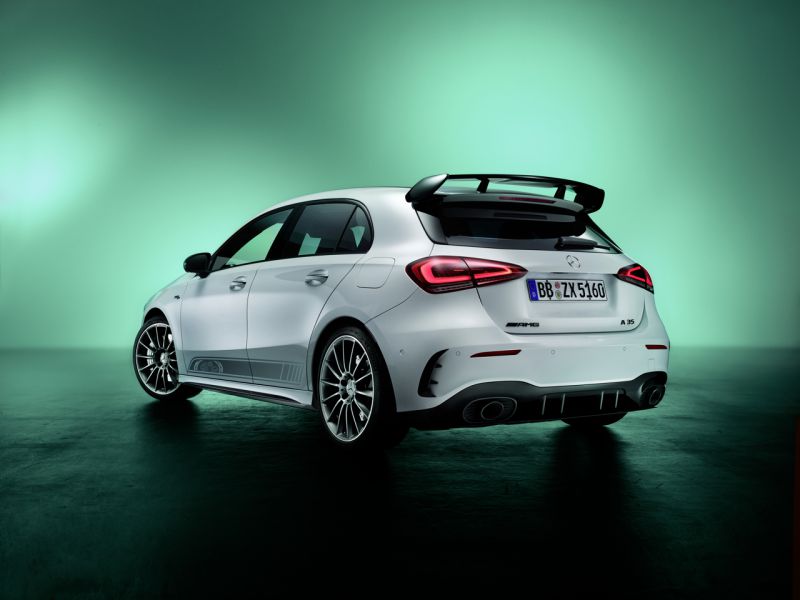 – AMG 55週年特別版飾板 (H96) – AMG 55週年特別版貼飾 (U15) – 油箱蓋含 AMG 字樣 – AMG 空力套件 (B26) – AMG 夜色套件 I (P60) – AMG 夜色套件 II (PAZ) – 車漆: 銀粉漆 – 白 (144U) 銀粉漆-亮黑 (191U) – 輪圈: A35: 19吋 AMG 多輻式輕合金輪圈 (RRH) A45 S: 19吋 AMG 交叉輪輻式鍛造輪圈 (RTH) |