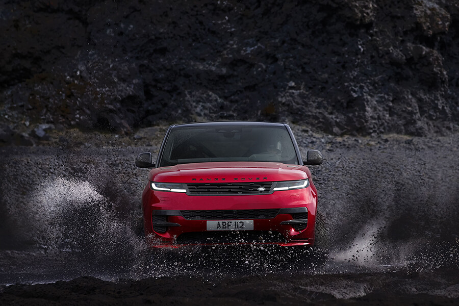 Range Rover Sport車頭具有充滿氣勢的短前懸設計與前、後傾斜的車窗,建構獨特且引人注目的外觀特徵;同時類隱藏式水箱護罩搭配數位 LED頭燈,強化了獨特的日行燈造型。而Land Rover 有史以來最纖薄且引人注目的兩側進氣口設計採用水平平分下保桿比例搭配車身同色設計,創造出更為寬大的視覺寬度,並透過黑色強化細節。全寬式設計後尾門融合帶有 Range Rover 字樣銘排,同時車後貫穿式的 LED 尾燈也首次將 surface LED 技術導入量產車輛,在夜間仍可提供清晰且具現代感的外觀。至於經典的腰線設計由前至後貫穿全車,更低的下擋泥板和有史以來安裝在 Range Rover 上最長的擾流板都是新款Range Rover Sport的重要特色。藉由精準的齊平玻璃、隱藏式車門把手與雷射焊接技術,New Range Rover Sport具備更加俐落的外觀線條;此外,這些建構出精緻設計的高超技術亦有助於實現出色的空氣動力學表現,使 New Range Rover Sport 的風阻係數僅有 0.29。
