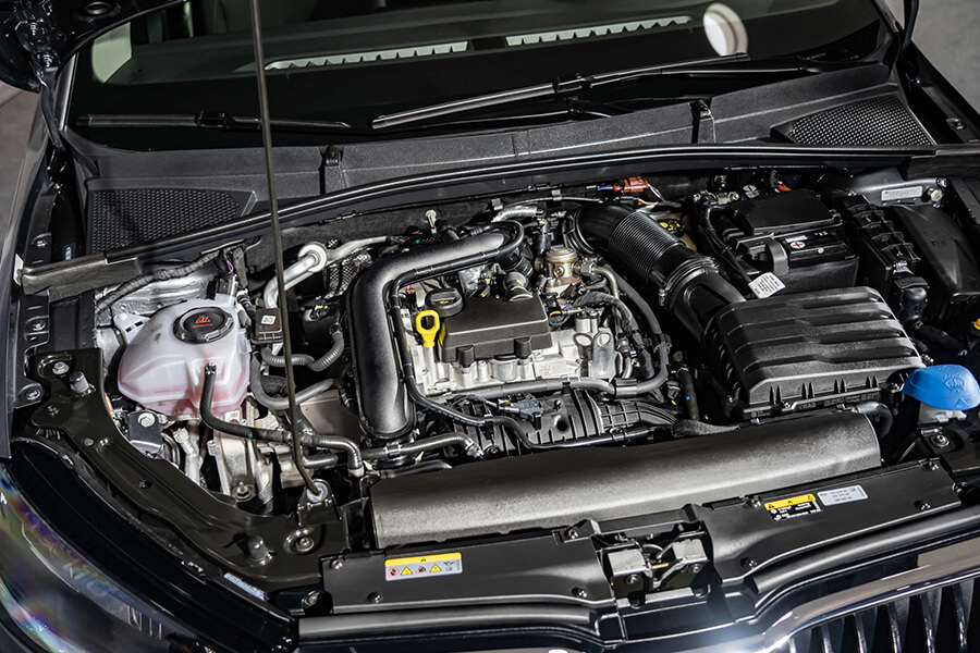 入門首選的1.0 TSI直列三缸引擎具備110匹馬力、20.4公斤米的最大扭力,在七速DSG雙離合器自手排變速箱的輔助下,擁有0~100km/h加速所需時間9.6 秒、極速205km/h的表現;且在米勒循環以及渦輪增壓可變幾何的助陣下,讓這款車可以有效提升三缸引擎的穩定。