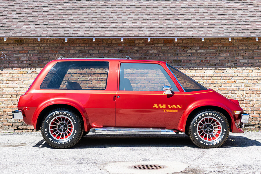 雖然此車貼上了"TURBO"及"4×4″的字樣,事實上此車並不具備其中任何一項:更精確地說,AMC AM Van僅具備木製車架、部分的內裝以及可以滾動的輪子,嚴格來說甚至不算是輛車。不過AMC AM Van倒是足以體現1973 年石油危機之後,公司董事長小羅伊·查賓 (Roy Chapin, Jr.) 試圖將 AMC 帶往追求更小、更省油汽車的企圖。而老實說,車上那喇叭形葉子板、深邃的前氣壩、大型側排氣管和厚實輪胎中的華麗寬輪還真的十足體現當時對於未來的想像。