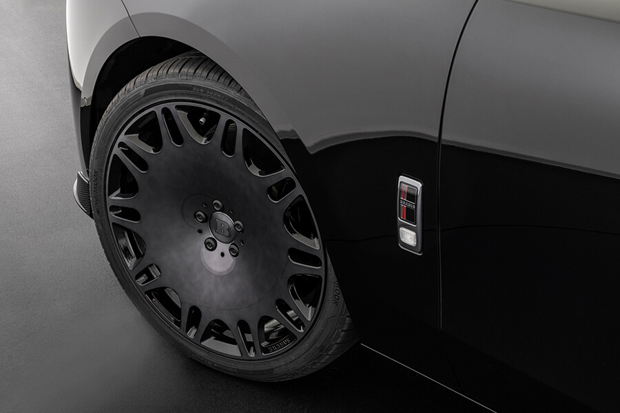 這部BRABUS 700在車身外觀周圍 碳纖維前導流、碳纖維的進氣飾板、後擴散器和尾翼—是的,他們在勞斯萊斯上頭加了尾翼。