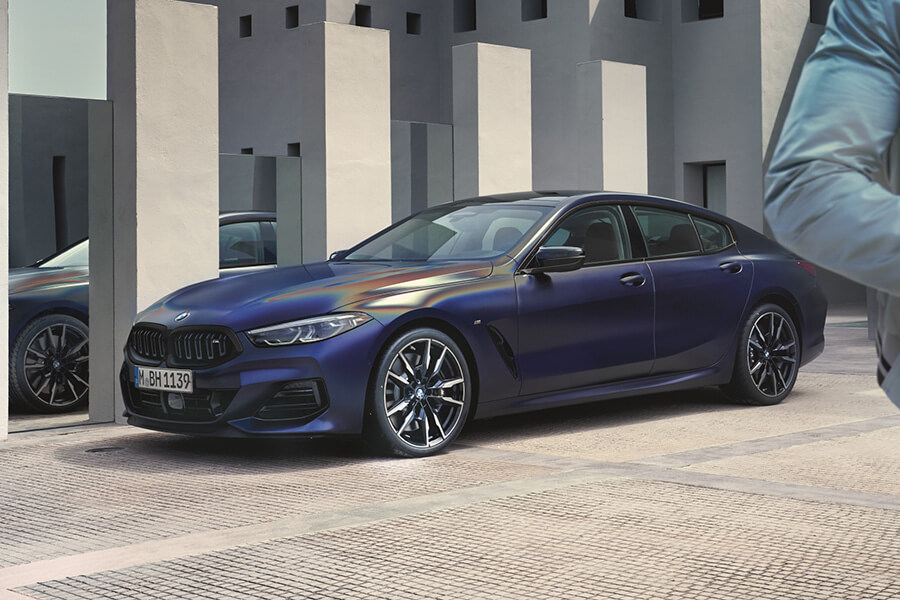 完美揉合優雅線條與動感身型,BMW 8 Gran Coupé在5,082mm、1,932mm與1,407mm的車身尺寸內,結合長車頭、短前懸的優雅比例及全新設計的雙肋直柵式BMW飾光水箱護罩不僅型塑強烈跑格,更為全新8系列Gran Coupé展現十足氣勢;若隱若現的車身、後葉子板折線的肌理線條,力量感兼具的流線身型搭配3D立體雕琢設計的LED尾燈、車尾立體導流設計以及整合矩形雙出尾管的後下分流器造型,除了營造出強烈性能氛圍與層次感,在全新20吋M雙輻式輪圈與藍色M煞車套件的輔佐之下更顯運動化氛圍。