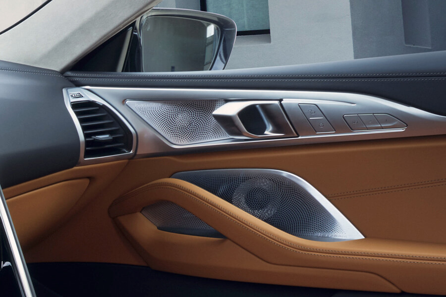 在內裝鋪陳上,12.3吋的虛擬數位儀錶搭配12.3吋中控觸控螢幕構成的全數位虛擬座艙融入了BMW經典的駕駛者導向設計,結合BMW iDrive 7.0使用者介面、智慧型螢幕鑰匙與BMW Personal CoPilot智慧駕駛輔助科技,使人車互動進階未來;同時,全新8系列Gran Coupé座艙更全面採用BMW Individual Merino頂級真皮材質,結合舒適型雙前座跑車座椅、M多功能真皮方向盤含換檔撥片、Walknappa真皮儀錶檯包覆與頂級水晶中控套件,不僅為全新8系列Gran Coupé精工細琢,全面列為標配的頂級Bowers & Wilkins鑽石級高傳真音響系統,更透過16具揚聲器與高達1,400瓦的總輸出,將全新8系列Gran Coupé打造成猶如國家級音樂廳般的座艙體驗。