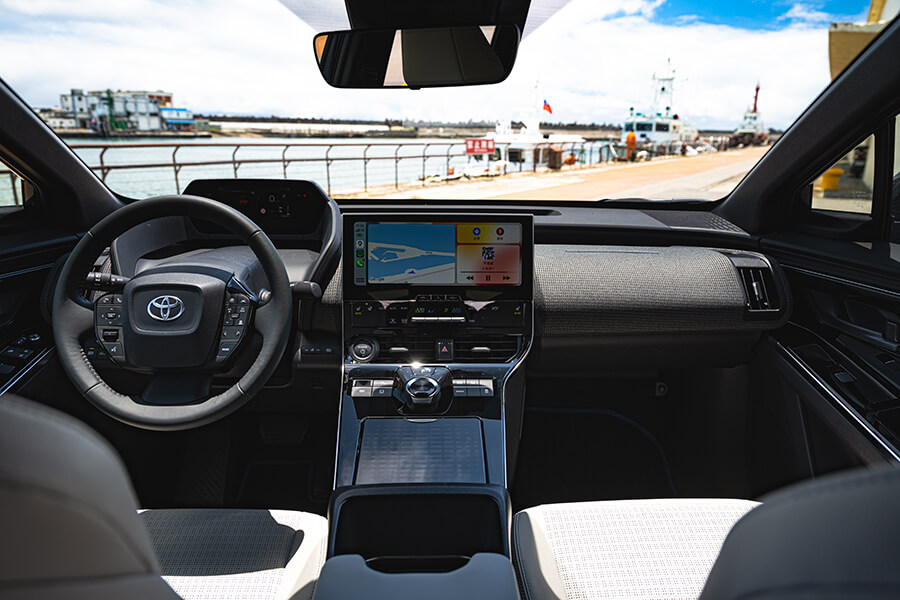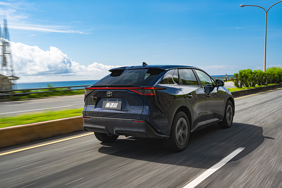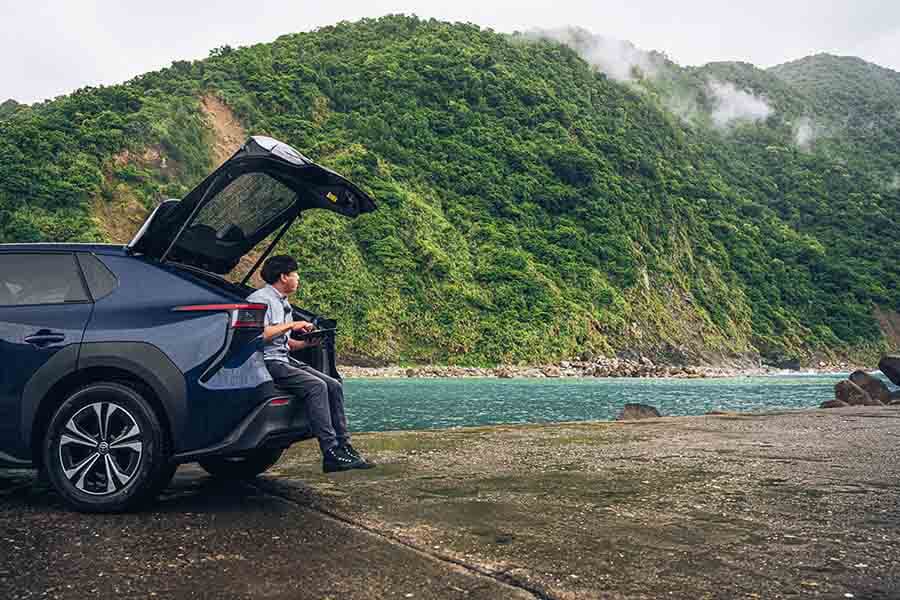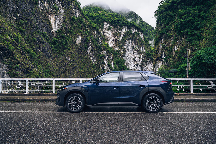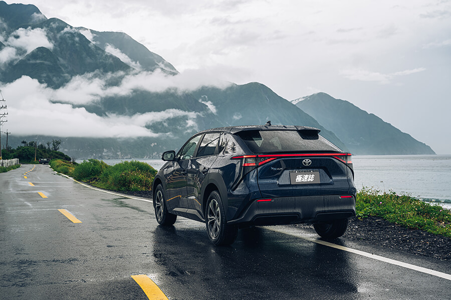 在這裡我遇到第一位捕獲野生純電Toyota的老兄,就是從旁駛過的警車,居然冒出一隻手機對著車拍,哈,沒想到身形跟 RAV4雷同的bZ4X還是被認出來了,畢竟這部車的設計手法既細膩又大膽,車頭、大燈及腰線都相當前衛之外還兼顧低風阻及風噪抑制,相當有特色。接下來的路程我打算直搗台九丁,此處就是過去的蘇花公路,在蘇花改通車後因為車流量大減, 加上多彎且刁鑽,成了體驗操控及欣賞壯觀景色的聖地,即便由高聳峭壁環伺的道路夾帶著危險氣息,但每次我總是抗拒不了在此飛馳的誘惑。