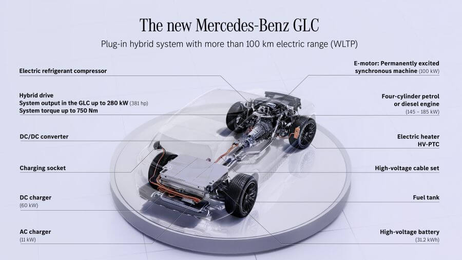 GLC接下來也會如C-Class同樣以四缸引擎為主要動力來源,2.0升的汽油可提供204/258匹的實際輸出,再配上isg馬達提供的20/23匹輔助動力,預計這也會是未來國內主要的購買大宗車款,不過在整個電氣化的驅使下,PHEV也會是未來買主們可以多多考慮的重點選擇,GLC 300 e、GLC 400 e與GLC 300 de 三車都將會配置31.2kWh的電池模組,汽油車型綜效輸出分別為313hp/56.1kgm 與 381hp/66.3kgm,柴油車型更可達335hp/76.5kgm,而三款PHEV都擁有100公里的WLTP測試續航里程,相信你可能會因為買下這部車而忘記以前常去的加油站到底在哪裡。