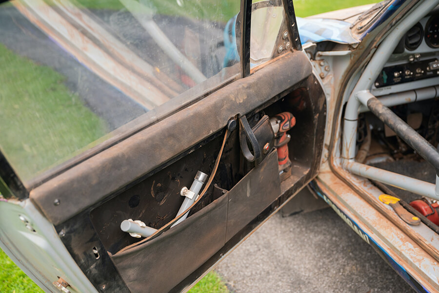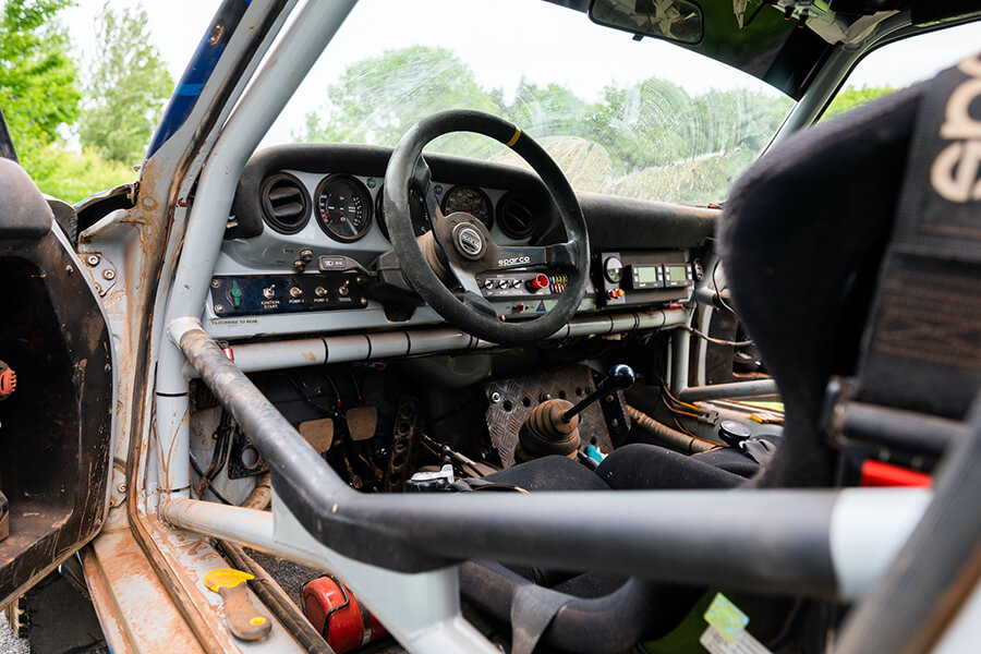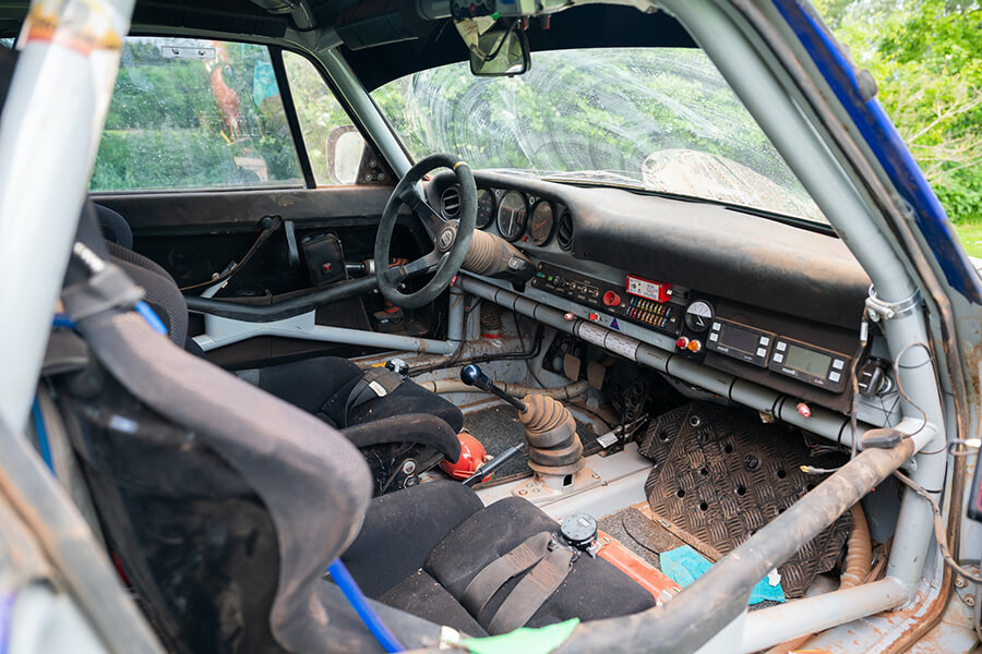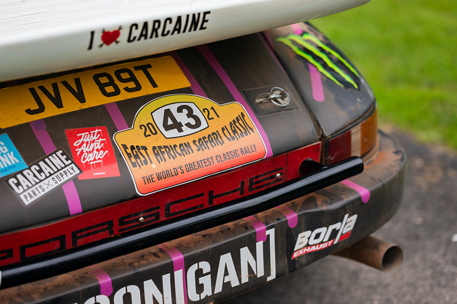 話題回到Ken Block欲出售的911身上。此911SC為備戰東非Safari Classic Rally而拆空、並花費約350小時一一補強車身結構,並且施以雙層鍍層處理、升級避震系統、安裝全車車底護板及前方的保險桿,而15吋的Braid合金輪框則配上了205/65的Dunlop Direzza 86RW拉力胎。不僅止於外觀,此車內部也和上防滾架、訂製線組、賽用安全帶、加溫除霧擋風玻璃以及包含車輪螺母槍在內等工具;在安全部分除了車內配有手持式滅火器外,車內也具備內建管路式滅火系統。
