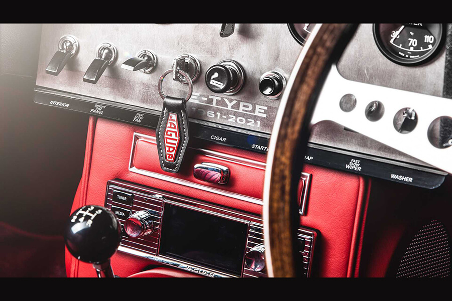 除此之外,在車內配備了木製方向盤及金屬中控台,中控台上頭有著E-Type 1961-2021的雕刻字樣。同時在下方有著小小的觸控螢幕,可以藉此具備衛星導航及藍芽連線等功能。