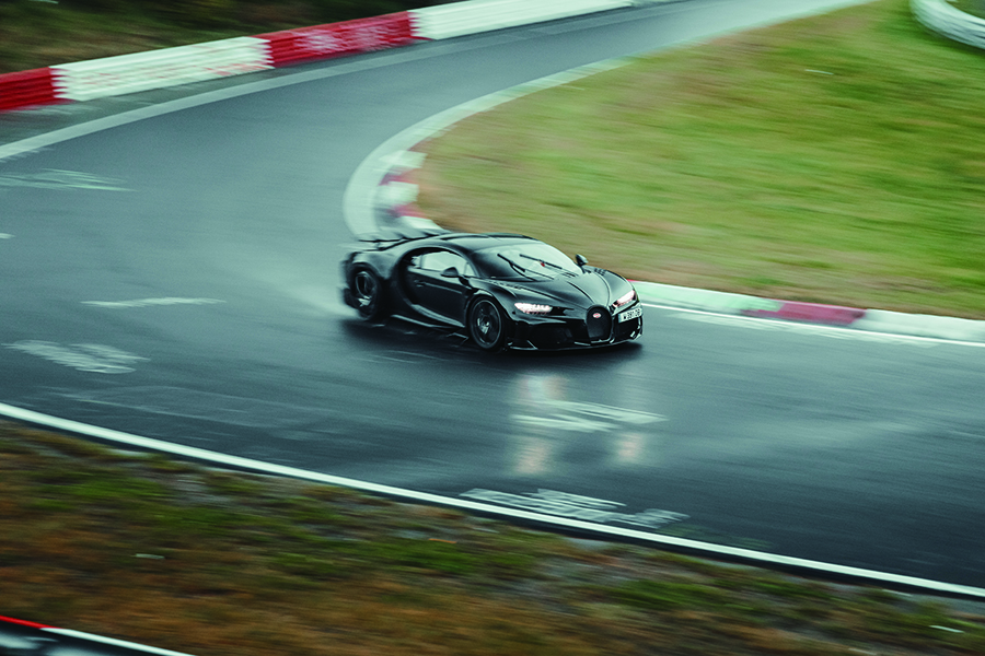 一提起高速境界,我便彷彿聽到autobahn的呼喚,不過出發之前得首先參加Andy主持的導賞團。向我逐一介紹這部車的特點時,他提到一些駭人聽聞的花絮,每一則都勝似試車筆記上的金句。譬如車手若有本事在世上找到足夠空曠的場地一腳釘死油門,SS只需6分50秒就可以令油缸空空如也;或者在時速490公里之下,這套內部經過強化的特製Cup 2輪胎所承受的拉扯力,原來相當於拆走輪圈後用大鐵鏈穿過輪胎一舉吊起三點五部Chiron。就這樣震驚個夠後,我們便正式上路。