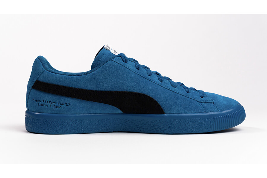 為彰顯此系列鞋款的獨特性,除了用作基礎的Puma Suede鞋款本身就是為慶祝奧運田徑選手Tommie Smith,而以其背號限量生產307雙的限量鞋款外,在鞋屁股以及鞋跟兩側也有著RS 2.7的字樣、圖案以及1 of 500的字樣;而在鞋舌處也有一處911 Carrera RS 2.7的車側圖樣。