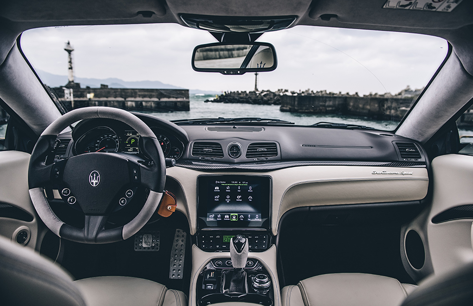 兩年前試駕的MC Stradale是突變種,懸吊硬如鐵石,變速箱脾氣古怪不易捉摸,問世之初甚或拆除後座加裝防滾架補強結構,更適合獨自駕駛,抑或運往賽道,在某個風和日麗的週日午後一併刨除輪胎和賽道上的老廢角質。眼前身披海軍藍大衣的GranTurismo Sport則是那種詮釋GT真正定義的汽車,嚮往豪快長征的浪漫之士肯定會為它傾心。