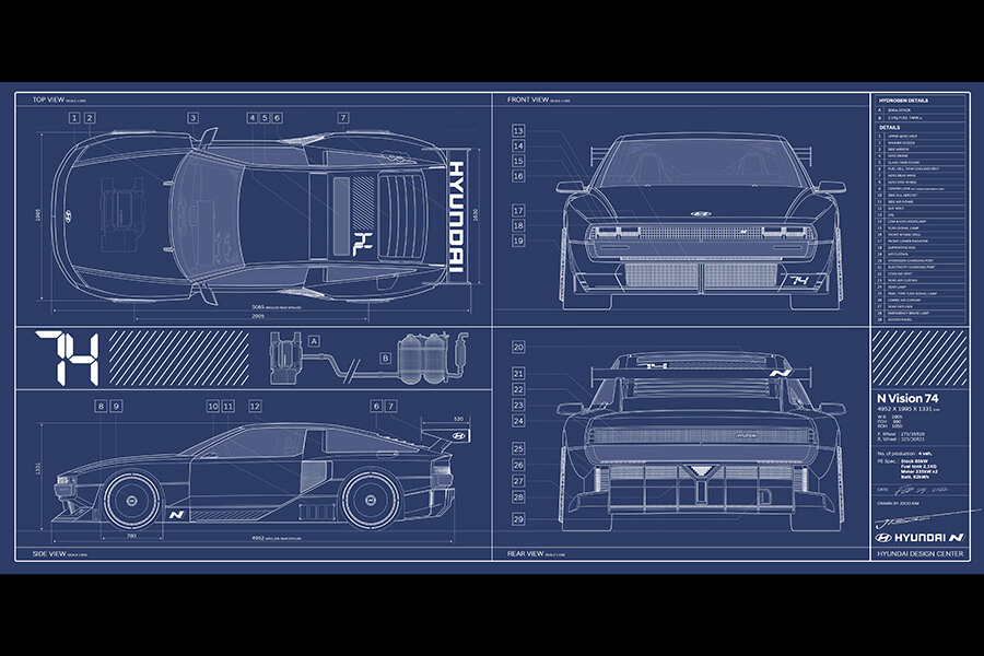 現代汽車推出其技術實驗系列最新產品:N Vision 74。相對於Ioniq 5的前身:45 EV Concept師法自家首款量產車Pony,N Vision 74的設計靈感則來自於此品牌於1974年都靈車展,與Pony同場發表的品牌首款概念車型:Pony Coupe。當年的Pony Coupe為設計泰斗Giorgetto Giugiaro所執刀,旨在刻劃當年初出茅廬的汽車製造商對於當代跑車的想像,可惜的是此車最終並未投入生產。