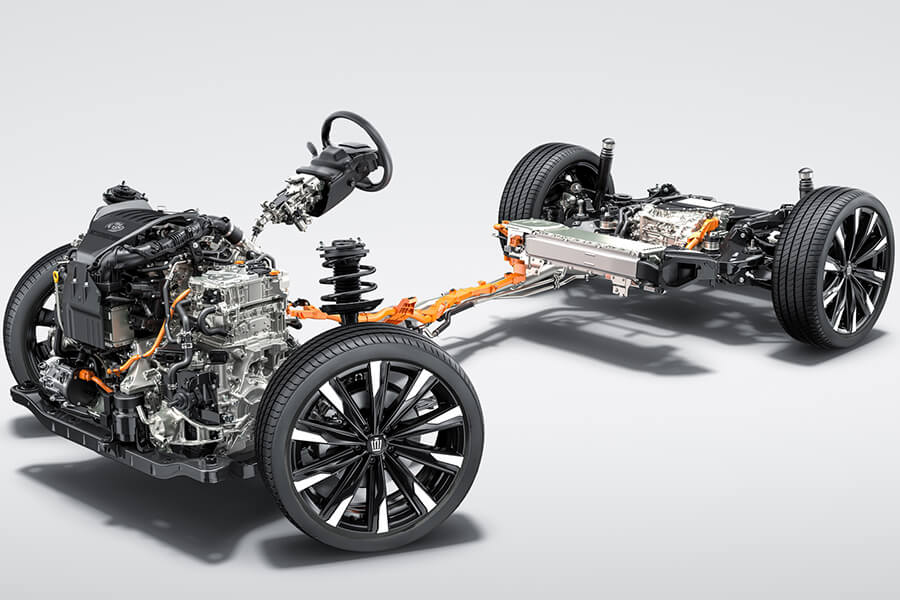 動力方面在上述所提及、具備340hp動力的2.4升渦輪混合動力系統中,在低速狀態下也可以產生強大扭力,搭配上eAxle電動動力總成及新開發的雙極鎳氫電池,能在駕駛者的操控下給予線性反應,營造舒適的加速過程;至於2.5升串並聯混合動力系統配備優化的高效混合動力系統極同樣配備雙極鎳氫電池,使燃油經濟性與靜肅性更上一層樓。