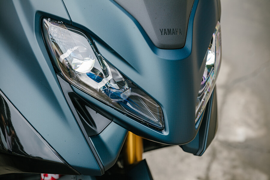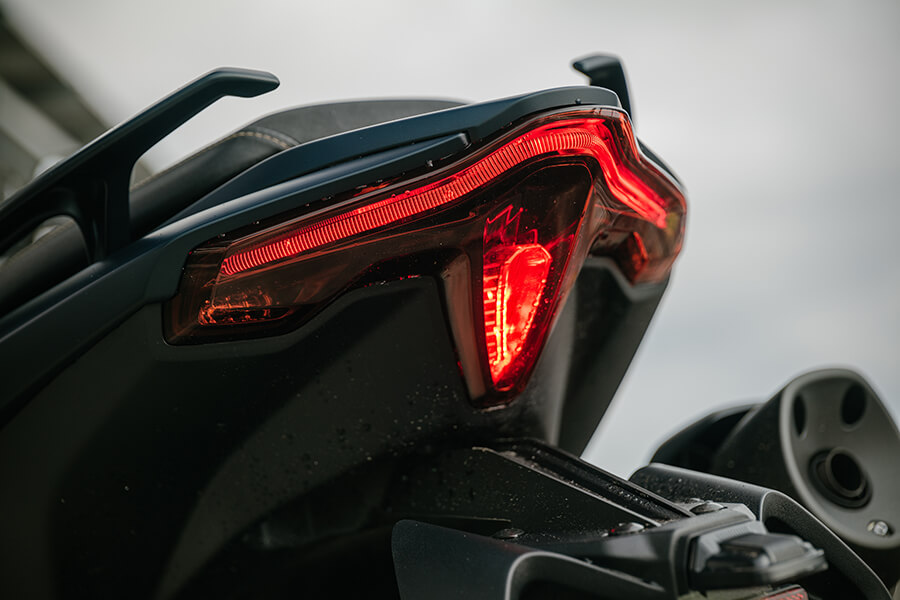 首先廣受外界議論的車頭外型實際看起來果真沒有照片看來那麼…創意過剩。對比前幾代強調氣勢與存在感的設計,新款TMAX那如同船首或機鼻般破開空氣的設計與隨處可見的水滴狀曲線真可謂風格丕變。帶著將TMAX更加運動化的意圖,跑車化的設計不僅車頭體積縮小、收尖並採取投射式LED雙大燈,車身與車尾亦採跑車般寬而扁的設計。