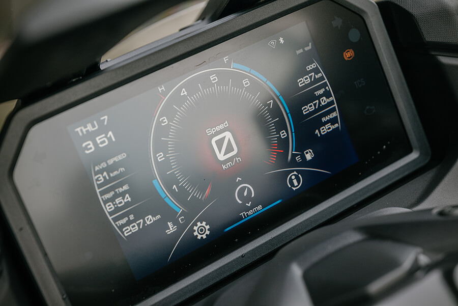 經玩耍一陣後,筆者猛然想起TMAX 560終究是一台大型速克達,如此運動化的大羊究竟在中長途的旅行時呵護騎士的能耐究竟如何?於是索性把騎乘時間與距離拉長好探究一番。在筆直的沿海公路上,TMAX 560除了透過可三段調整的靠背與更加向前延伸的前踏空間協助騎士找到更舒服的騎乘姿勢,同時Tech MAX版所帶來電動風鏡更有利於不同騎乘環境轉換間的調整。7吋的TFT儀表介面猛一看與Lexus倒有幾分相似,介面中也可與手機通訊、娛樂連結,並直接投影GARMIN的導航介面在儀表之上。在中途休息加油中,新的免鑰匙系統操作也更直覺,油箱蓋更透過感應統與電磁閥配合,只要直接進行開關即可。