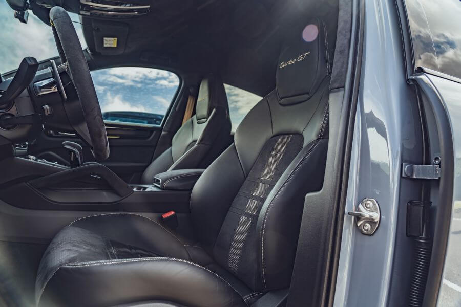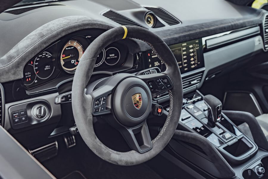 或許是GT Model部門這幾年發展特別順遂,保時捷一方面大推電氣,另一邊也盡可能壓榨出燃油車款的最大價值或吸引力,這也是第一次把Cayenne列入GT 一名,各式各樣的專屬特調自然不在話下。例如眼前的冰極灰車色、雙層尾翼再加上22吋胎圈組,就會知道掛上GT一名的Cayenne真的不是平常見到的那樣,站在Defender旁邊也更顯得寬扁低矮,十足就是輛跑車而不是你我印象中的SUV。