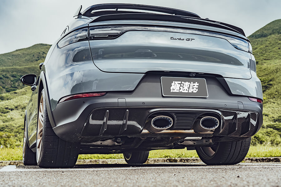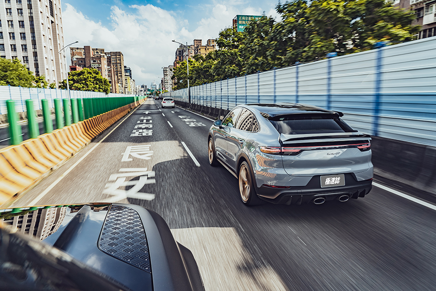 為了展現最純粹的操駕能力,Cayenne Turbo GT同樣沒有配置任何的電氣輔助系統。4.0升雙渦輪引擎在大量的硬體修改後來到640匹與86.7公斤米的猛爆級扭力,幾乎可以化2.2噸的車重於無形,變速箱的反應更是積極,多少也彌補了動力放大後,實際黃金工作區間會稍微縮窄的問題,但有趣的是工程師把扭力峰值控制在相當實用的轉速帶,實際跑起來很容易保持在扭力高原區,感覺就像是侏儸紀世界裡的小藍,總是瞬間就能衝出最高速度,一溜煙的在那頭黑色帝王暴龍邊竄來竄去。而且還刻意塑造出了類似於911的頭輕尾重的動態特性,車頭那V8引擎的存在感不是很明顯,除了坐高高了點,但四輪傳來的短促行程與慣性抑制實在讓人拍大腿叫好,這兩台車真是幽默,一輛是想假扮超級大鋼砲的越野車,一輛是要讓你覺得是在開911的SUV。