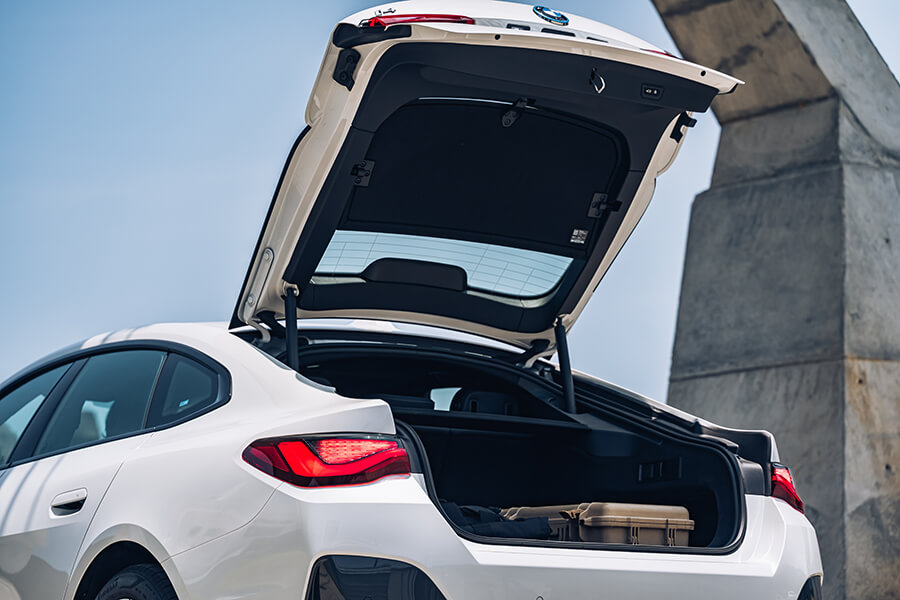 i4就是油電共生的最好示範,算算它與4GC兩者一前一後間隔不到一年的發表時間點,回推開發階段想必是有共同進行引擎與電動版本之間相對應的規劃。因此你可以注意到i4還是輕輕鬆鬆地塞進一副80kWh的電池模組以及最多兩具馬達。至於我們這次試駕的後驅單馬達eDrive 40車型,基於車頭空間保留傳統散熱與風扇系統在最前方,後方則為電機控制以及結構強化連桿等架構,也就沒有特別花心思收拾出純電車特有的「Frunk」前行李廂空間,這點稍稍比同屬油電共生的瑞典那位SUV小將差一點誠意,不過i4依然維持與4GC相同470-1290公升的後廂空間,我想對於大多數i4的使用者來說也還是很夠用才是。