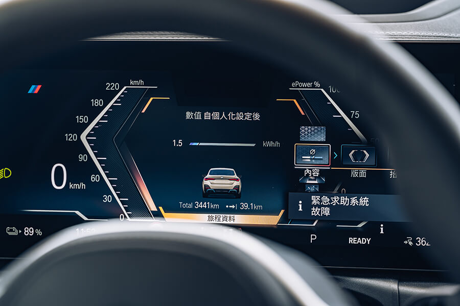 而在動態表現上,我想BMW算是相當仔細地按照寶馬自家特性來進行i4的整體動態反應,而且在馬達的特性催化下,有時候你會在i4上感受到比燃油寶馬更加活潑,甚至帶有一點痴狂的動態狠勁。i4 40雖然重逾兩噸,但那具340匹/43.8公斤米的後驅單馬達可一點也不是溫文儒雅的類型,急加速的反應的確充分展現電動車的瞬間彈射特性,我特別喜歡它在快速或高速公路上超車的反應,油門開度加大一點點,就可以從原本的滑行變成蛙撲彈跳而出,輕輕鬆鬆畫出一個順暢的超車曲線。不過呢,i4似乎也比較著重在瞬間爆發力,中後段的加速明顯平淡不少,因此我反倒不太喜歡總是油門到底的拉抬車速,而是多利用油門行程的前2/3,讓每次的加速都發揮馬達前段爆發力與穩定的中段加速組合出一種非常暢快有勁的體感過程,充沛的扭力配上i4相對敏銳的車尾動態,再加上特調音效系統發出截至目前最近似於引擎排氣聲浪的效果,開起來可說是相當有趣,而且更能帶來非常直覺的駕駛體感。而台灣引進的車款也統一以優惠價加碼Racing Package,電子阻尼可變避震器加上後軸負重考量而標配的氣壓系統,開起來兼具質感又別具駕駛趣味的感受,的確讓i4有截然不同於既有寶馬跑房車的樂趣存在,而且整體購買成本其實也相對划算許多,除非你真的很沉迷於雙馬達,否則我想後驅單馬達的i4,其實相對值得入主,不過我倒希望總代理能多提供一個維持運動底盤設定但不強制升級M系列外觀的選項,讓i本身的特色能在路上多發揚光大。