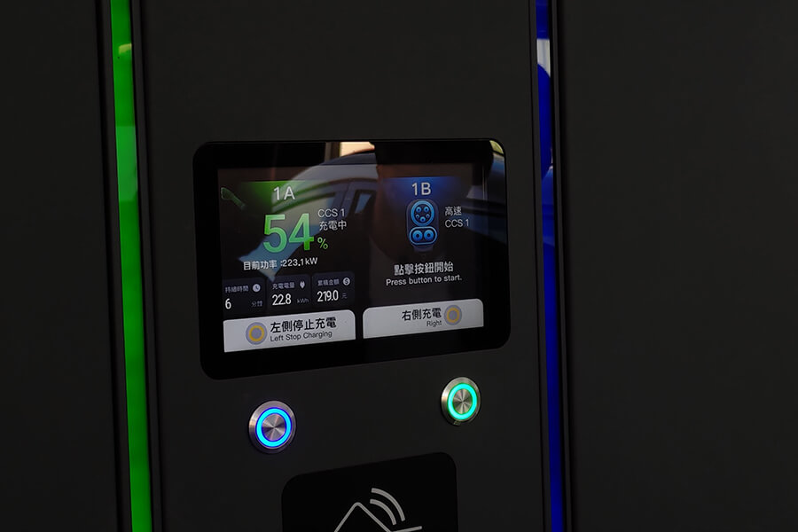 至於相關的電力機能,V2L供電服務可以自主設定最高的用電程度我想會讓車主拓展出一些新的駕車生活型態。但如果想要趴趴走的話,電力補充這門課題我想還是稍微麻煩的一點,不過認真來說國內投入快充站建置的業者也與日俱增,找到充電站或許不難,但要如何用最便利的方式找到充電站,一樣是廠方在台灣需要再多認真一點的地方,能讓車輛本身就有充電指引規畫能力,對於拓展接受度絕對是有利無弊。而廠方目前主要合作的充電服務商,也確實展現出它們建置300kWh以上充電功率器材以及車輛本身對應力配合下的快速優勢,當我一早就前去想把54%的電補滿一些讓我後面好盡情揮灑,從50~80%的充電只花了我短短11分鐘,刻意再繼續充至90%則再多花了約8-10分鐘,期間80%前的充電功率都可維持在100-160kWh,80~90%則維持在50~80kWh,就我目前累積的充電經驗來說,整體效率確實相對其他電車快速不少,特別是中段維持充電高功率節省的時間十分有感。下午回程看看其他試乘車返回充電時,大多都是剩餘10~15%開始充電,都可展現出220kWh的強力功率,所以再說一次,現在想充電不難,但怎麼讓”去充電”變得更簡單順手,依然是廠方服務盡量要多費心一番。