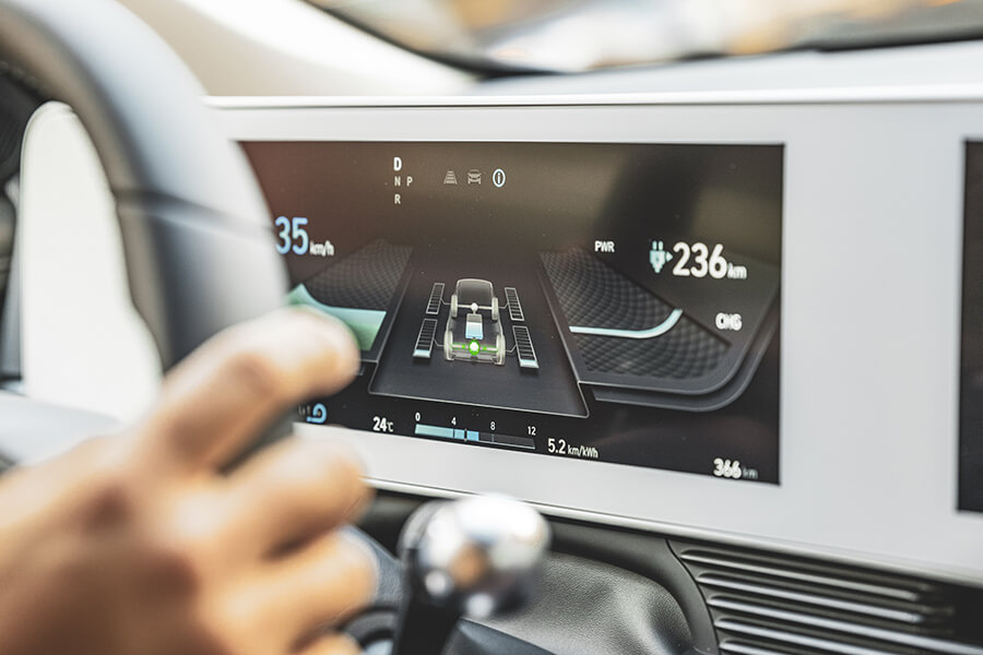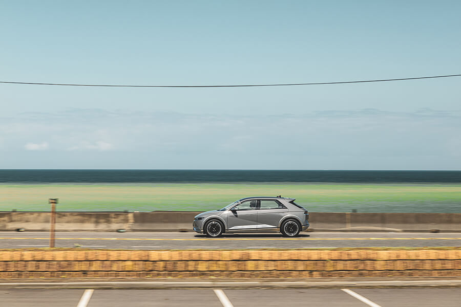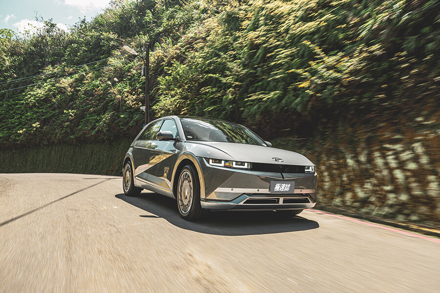 為什麼說是有趣?平時Ioniq 5走的是一派輕鬆撐托車體的路感,基本上屬於長行程的柔軟調,用正常車速或再快上一點的腳步都有不錯的掌握度,開起來會讓你輕鬆愜意。不過當路況開始多彎,而又想要切上Sport模式來試過幾招時,四輪懸吊就會清楚地告訴你這不是它的能力所及,但搖擺幅度不會讓人驚慌失色,而是告訴駕駛適可而止,這點我想堅實的車體也有相當大的幫助,保有足夠的行駛安定感,也很清楚的告訴使用者最好以適當的方式來駕駛這輛車,例如開著一台帥車散散步這種方式。