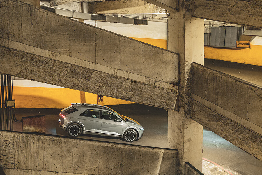 相對於雙胞胎另一位的歐陸硬派風,Ioniq 5走的就是輕快俐落的亞洲風情,這點也是Tucson身上有看到的一些設定方式。我們所試駕的是高規四驅車型,雙馬達提供的加速力道讓我瞬間忘記它的兩噸車重,整部車的反應就是極度輕快而沒有高車重的負載,真要一腳踹滿油門踏板,雙馬達四驅系統合力發威下,這個加速反應還是足以放掉一些自命跑車的小鬼頭。其中有趣的是,全力加速下的Ioniq 5並不會有我們過去開一些電動車大力加速時的抑揚頓挫,反而是非常冷靜的平直往前衝,這點除了動力本身不算過分強勁之外,底盤也很有一套特有的設計哲學,據廠方宣布的45kgw加速抬升力,比列舉出的對手都少了20kgw的數字可以作為一項科學驗證,這副作動輕柔的懸吊果然是讓人覺得有趣。