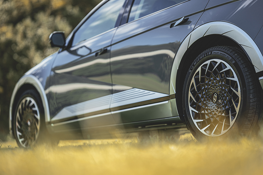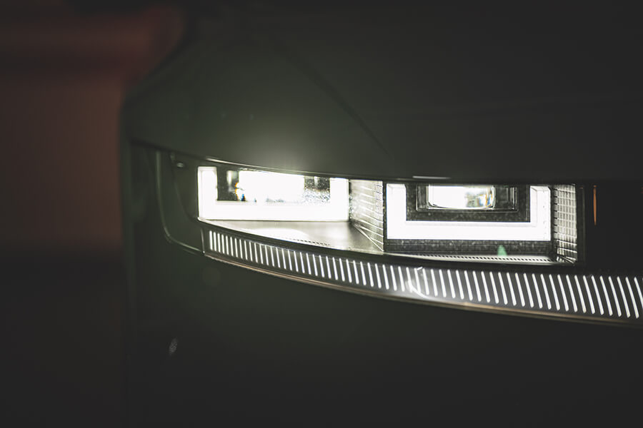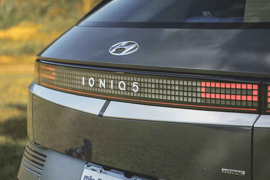 不過回過頭再想想,Ioniq 5的設計出發點來自Pony那輛算是創廠元老的掀背車,所以你可以看到整部車就是充滿80年代的剛直線條,配上一些刻蝕或折角手法打造的鈑件,看起來就是一種不屬於時下主流車款的設計套路。而且再加上頭尾燈組那些所謂的像素方塊設計,車頭下緣的AAF主動進氣板也毫不遮掩的直接外露,但卻又做到神不知鬼不覺地與車頭造型相互融合,走在路上的確感覺它不是這個時代的車,但卻非常新鮮有趣。另外則是與他的雙胞胎兄弟一樣,我想很多人也都對於實車到底甚麼比例感到好奇,單從圖片來看顯得有點小,實際上則是屬於高壯型車身,試完車回家後我正好遇上住家社區那輛偶而會見到的二代Golf Country,一台代表那個時代對於戶外需求而生的高底盤掀背車,Ioniq 5似乎就是它的放大版。
