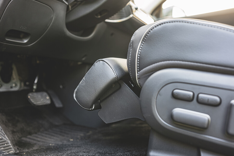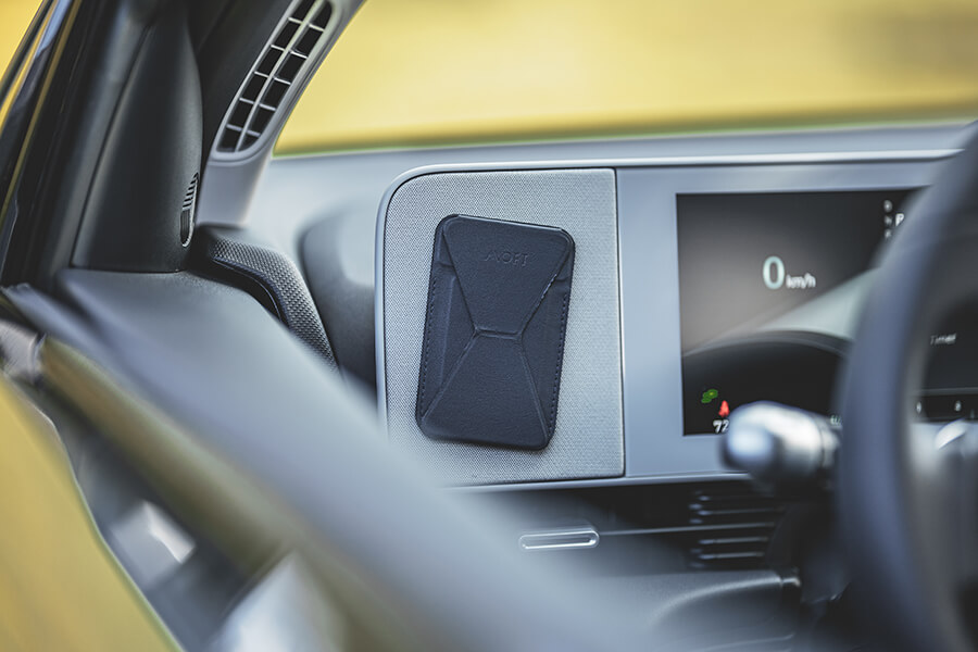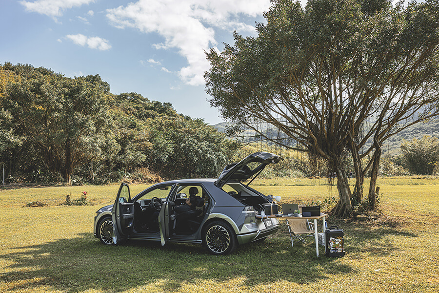 相對於滿滿創意的外型,Ioniq 5的車室就相對以實用機能見長,把車艙內部收拾的簡單整齊,換來開闊的乘坐感,而且待在車裡慢慢東摸西摸也會發現很多預料之外的好用機能,例如抽屜式的前手套箱、MPV風格的滑動式中央扶手還有非常平整的內門把凹槽,有很多小地方就是做出讓人很自然就能使用的規畫,讓你可以像在家裡隨手擺放各種東西,就像是中央扶手下的大置物區,當我買好中午與球褲的兩份便當與飲料,就很自然的拎上車放在這裡,不用再找行李箱掛勾還是開後車門放在後座地上,一切就是很順手很自然的使用環境。