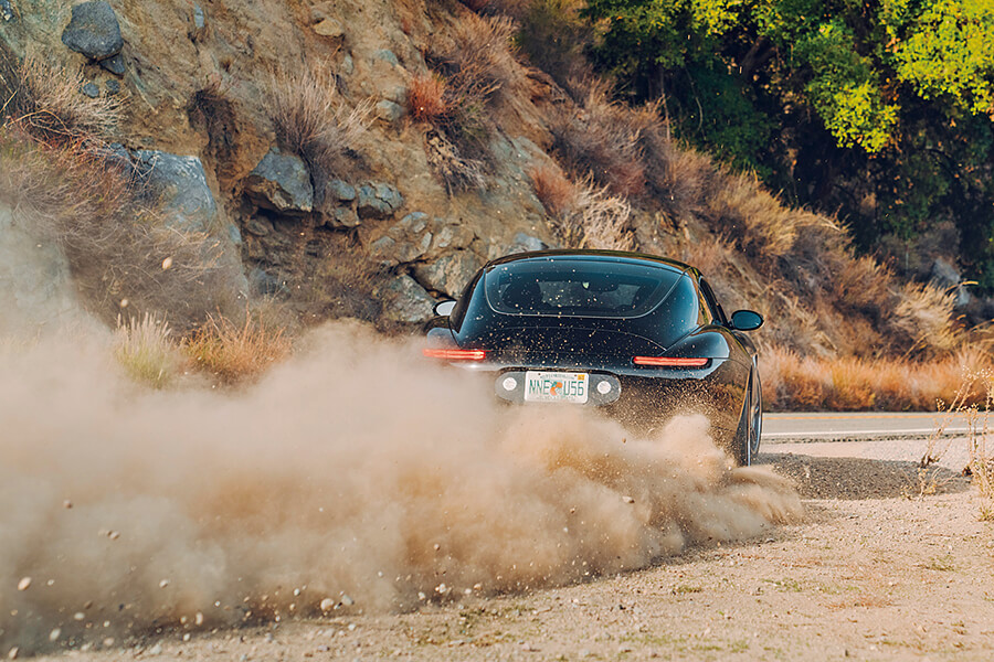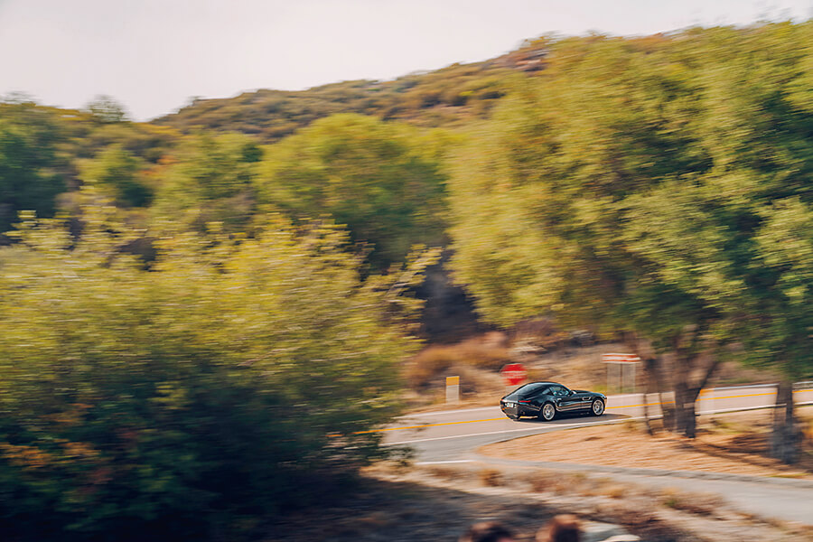 這是在更廣的層面上而言的性能表現,藝術性和身手無分軒輊共冶一爐,並以一種十分醉人的方式展現眼前——每次出彎,鬱鬱蔥蔥的山谷都會順著長長引擎蓋映入眼簾,每次加速引擎反應和力量收放都立竿見影,車架又剛好應付得了那副試圖洞穿引擎蓋的V8(見識過引擎蓋下面的擠逼情況,便知道引擎真的僅差一線便會破殻而出)。