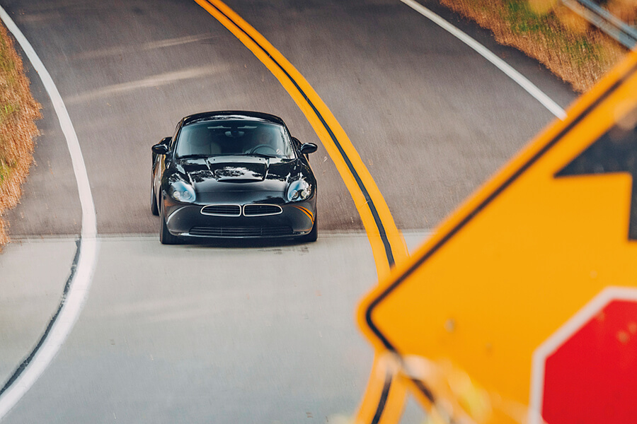 撥進一檔,離合器原來不是我預期那般難搞的腳色,粗短排檔桿動作既準確,又進取。不過這枝棍喜歡你爽快釘進檔閘的每一格盡處,而不是輕鬆隨手一撥。撥轉車頭瞄準山路開步走,最初兩個檔我只是略為催動轉速。可是一進入三檔,便覺得這部車的實力足以應付帕洛馬山所設下的挑戰有餘。就算引擎處於低轉速域,右腳輕輕一點油門也可以馬上絕塵而去,轉速升幅快似貪得無厭不斷向前衝刺。你會繼續衝鋒,任憑聲浪越來越澎湃激昂。這時候引擎的感覺和動靜已經完全不像一副懶洋洋的V8,反而好像所有內部機件突然換上輕裝,賽車風味變得濃又濃。隨著速度、劇力和聲威越來越強勁,你會以為轉速下一刻便會觸動限速器的神經。可是打算把右手搭在排檔時,順勢一望轉速錶卻發覺剛才一衝原來只是衝到6,000rpm,手上還有2,500rpm可以使喚,於是乎決定收回成命……