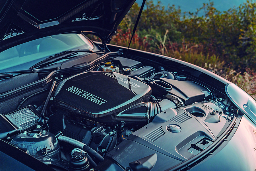 這部車使用E93 M3的4.0公升V8(詳情容後交代),安裝功夫絕不輕鬆,因為這款引擎的排氣歧管與底盤導架及轉向柱不大合拍,結果整個引擎艙得重新整理編排。他們先後修改了25遍,最終辦法是讓轉向機柱從排氣歧管之間穿過。由於公差只有5mm,他們必須重新設計引擎座,再用3D打印技術製作不鏽鋼成品。不過這些新支架可以跟原裝引擎座並存,所以不會造成更多機械振動,而且設計上已經考慮到日後製作右駕版的需要。