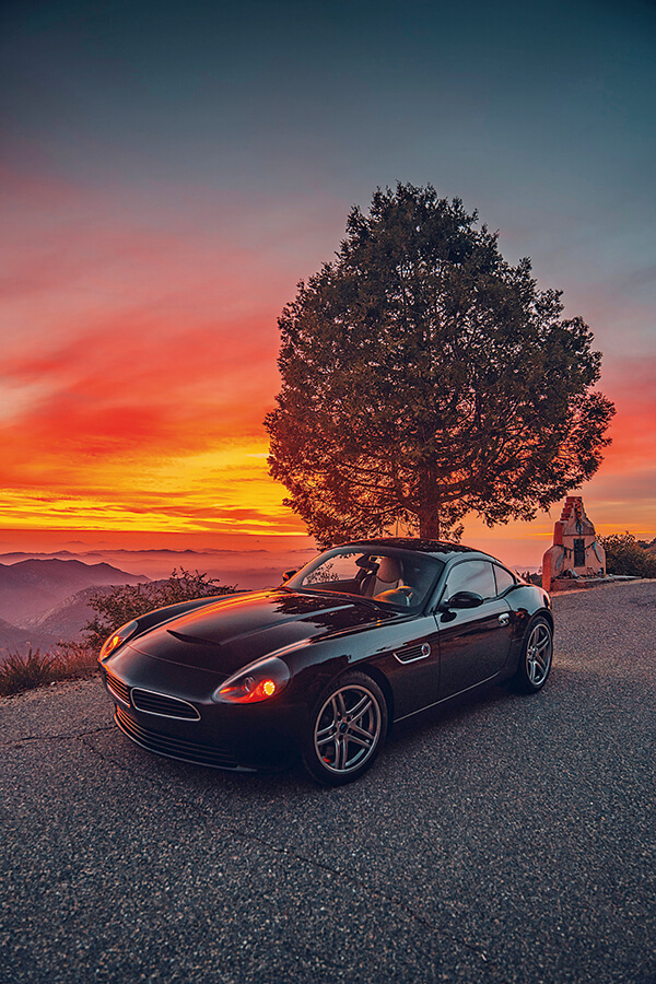 白日依山盡,油缸快乾塘。此乃現眼報,誰叫我一有機會便讓這副引擎縱情歌舞。接下來唯有提心吊膽摸黑下山,靠燃料殘量警告燈的橙色「怒火」照亮車廂。不過在此之前,我決定在高處避車處停下來先甜後苦,好好欣賞西邊黑壓壓的山脊在紅紅紫紫的晚霞餘暉烘托下變得格外柔和。你我不難說出一句令這對兄弟聽著不舒服的評語:這是一部45萬美金的寶馬Z4,車廂撇除真皮和裝飾不談實在很難令人信服。至於外觀,我覺得那個向507致意的八字鬚柵格也稍嫌柔弱,卻十分樂意愛屋及烏。