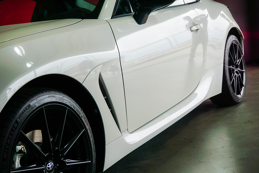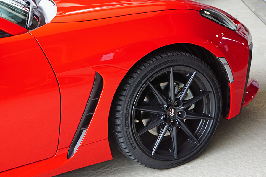 以低重心打造的全新GR86外觀,呈現修長、跑格化的車身線條。前進氣壩設計上融入GR專屬Functional MATRIX設計語彙,突顯GR86晉身成為GR家族的一員。鋁圈則採用18吋鋁合金霧黑輪圈、呈現飽滿的輪拱線條,並配備米其林跑胎,動感帥氣兼具性能表現。