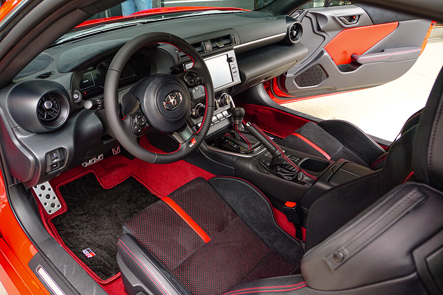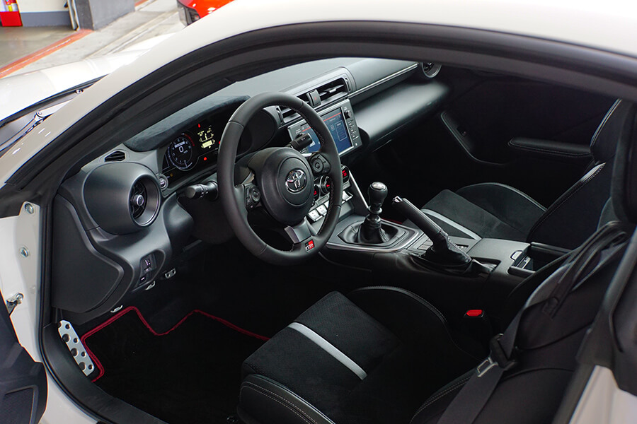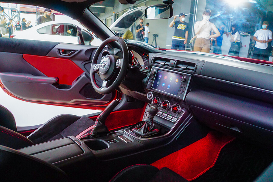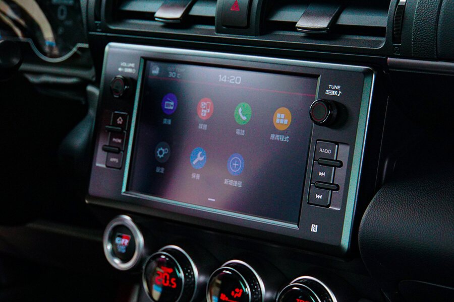 同時,7吋多功能數位儀錶板除了有GR專屬開機畫面外,可選擇顯示多種車輛參數,呈現如G值雷達圖、動力扭力曲線、賽道圈數等不同參數組合,並透過類戰鬥機艙之按鈕設計,以及可連結Apple Carplay 與Android Auto之8吋影音主機,大幅提升內裝車室之科技感。