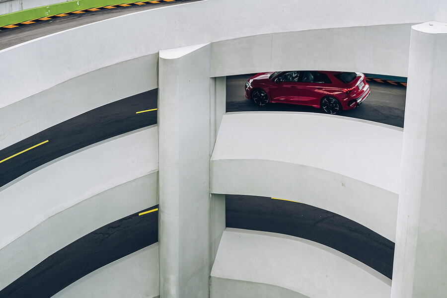 我想迴轉半徑這件事與RS 3延續它特有的底盤設定所帶來的一些日用弊端脫不了關係,不僅在輪距採前寬後窄,同時輪胎的尺寸也是前寬後窄的專屬安排,與自家quattro或是多數四驅車款的前後同寬設計有很大的不同處,廠方在去年發表時也以此做為一大宣傳重點,再輔以更新更聰明的後軸扭力分配系統,成為這次RS 3的核心元素。