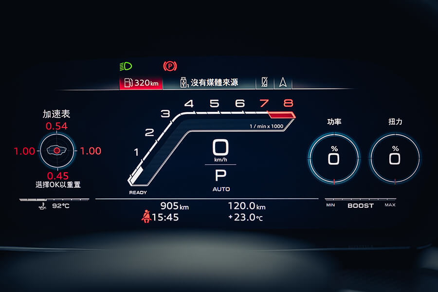 在多種的行車模式切換下,大多數在平時開著一輛奧迪,我常會把模式選在Auto。但是上路一個小時之後,我發現在正常移動過程中切在Comfort會有更好的駕車品質,這時候的油門踩踏幅度與加速反應相當同步,也可避免Auto模式會有一點點電控系統想顧此但有又失彼的輕微遲滯與頓挫感。配上電子避震器回饋變得較柔和,很能照顧到在市區或高速公路的平穩動態需求。而廠方也在配備上盡可能配好配滿,打開半自動駕駛輔助系統後,我也可以順便看一下MMI車載導航有沒有更節省時間的導引路線,或是用內建的網路連線機能,看看附近的天氣狀況是不適合好好走趟山路。