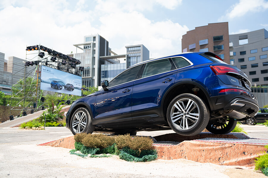 即日起The new Audi Q5 | Q5 Sportback 40 TFSI quattro 正式上市,台灣奧迪特別於上市周8/26(五)-8/28(日),在台北大直地區打造都會輕越野冒險,現場設置涉水、側傾、單輪脫困、碎石路面及駝峰等多重情境關卡,邀請車迷朋友親臨體驗The new Audi Q5 身懷多技的駕馭魅力。