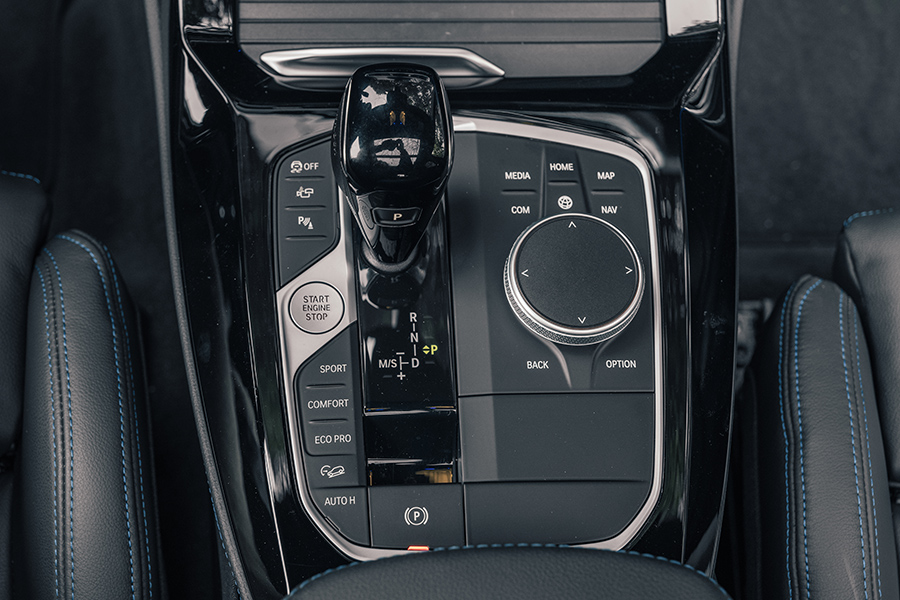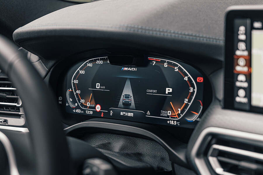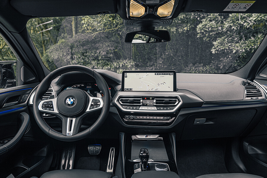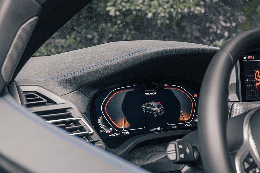 坐進車裡對於X4的陌生感就大幅減輕不少,雙12.3吋的數位儀表與中控iDrive螢幕負責了絕大多數的資訊顯示,身為高階車型的M40i也還有Hud抬頭顯示器讓我在開車是可以更方便的獲得資訊,把手機連上多媒體主機用Harman/Kardon的16喇叭音響系統放出最近配合GT7遊戲上市的一系列原聲配樂,相當適合配著X4來一趟山林間的音樂拉力兜風。